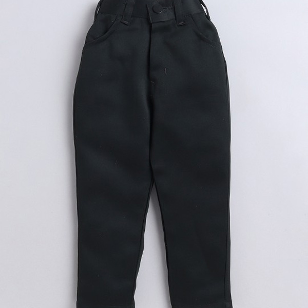 Green solid mid-rise trousers, has a zip fly with a button and a hook-and-bar closure, four pockets, a waistband with belt loops