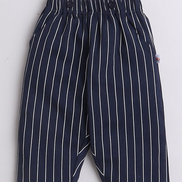 Beige and navy blue striped Trousers ,has a slip-on closure
